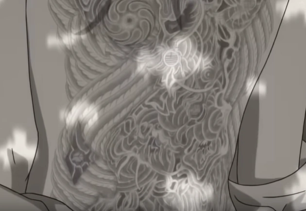Hibukuro's treasure whereabouts tattooed on Ojiya's back